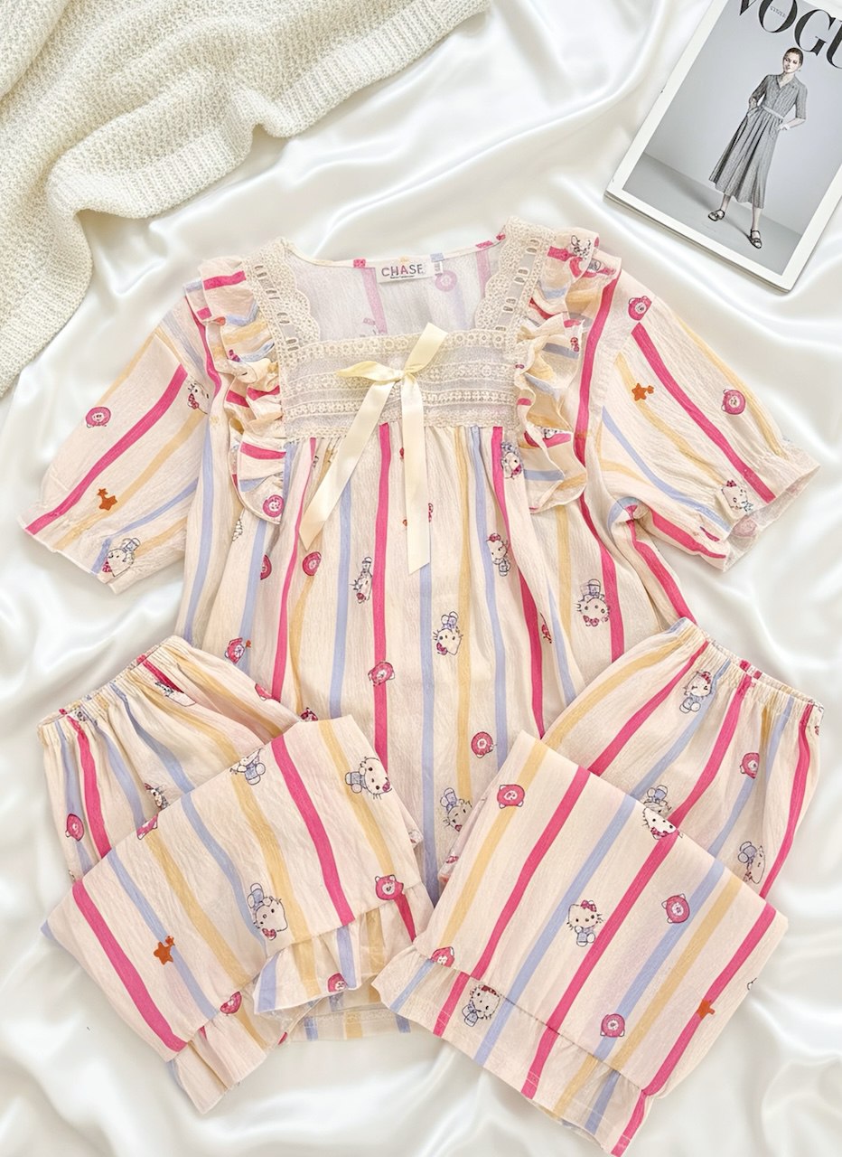 یقه گیپوری کیتی راه راه رنگی رنگی
